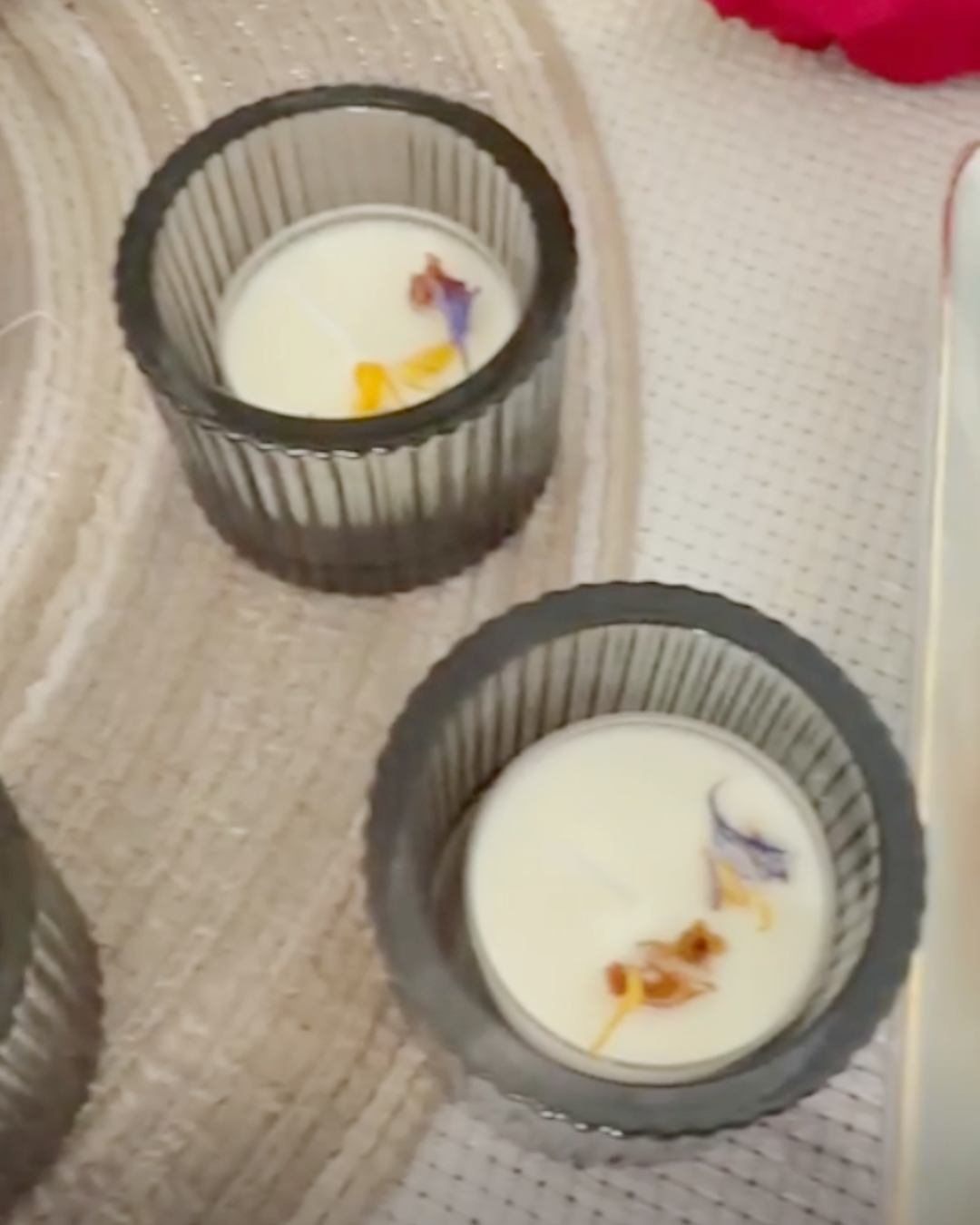 BUNGA RAMPAI TEA LIGHT + COLOURED GLASS HOLDER (MINIMUM ORDER OF 30 PCS)