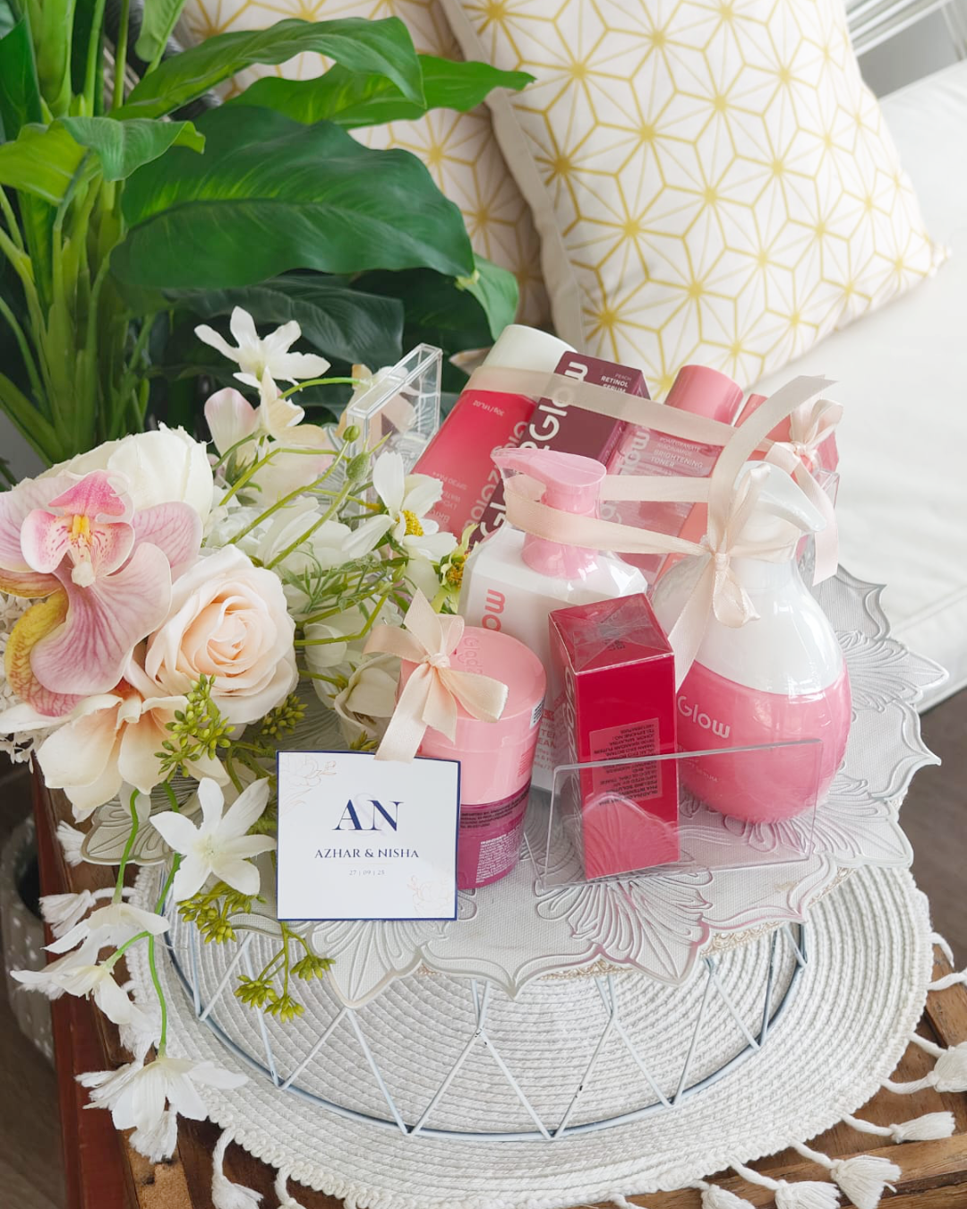 CLASSIC BLOOM WOODEN BASE WEDDING GIFT TRAY (GUBAHAN)