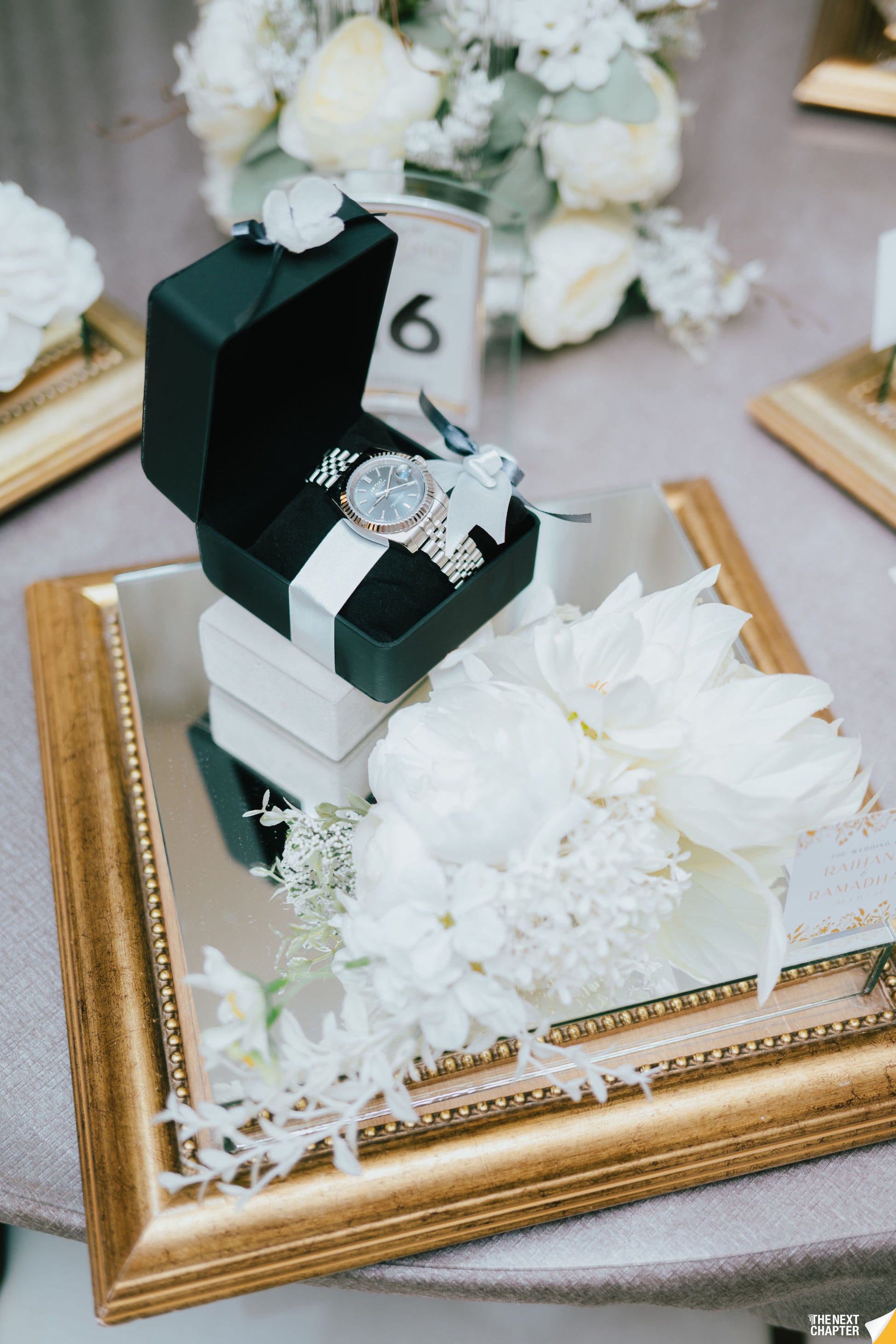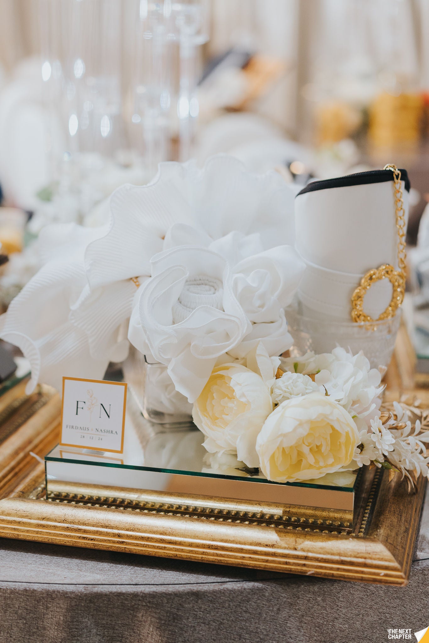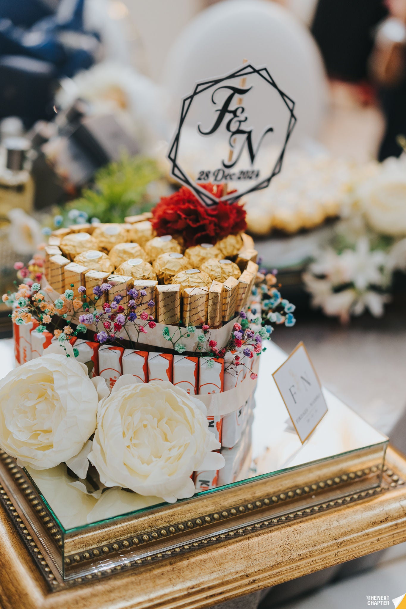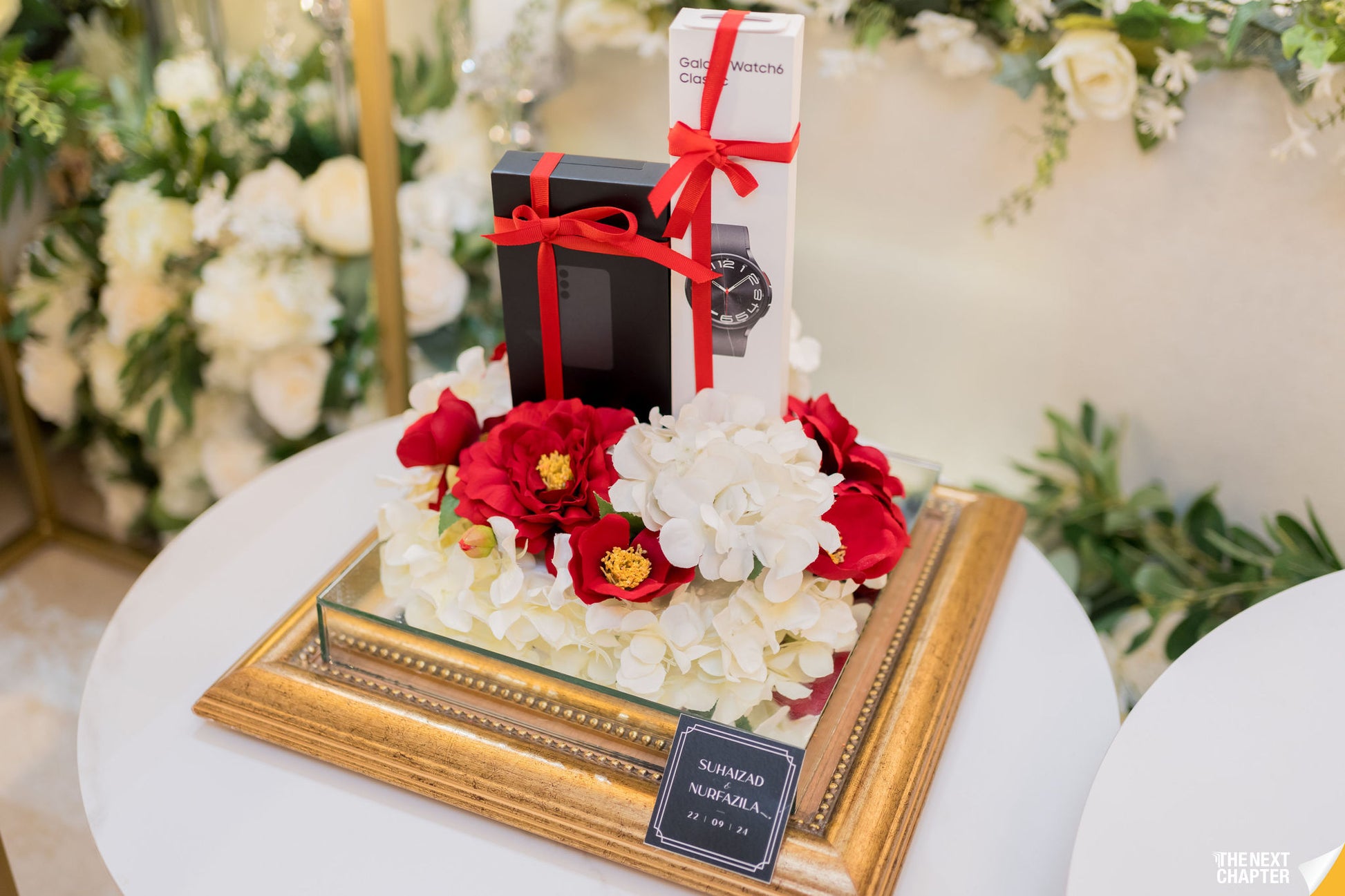A stunning wedding gift tray featuring a sleek mirrored base in copper or gold. Perfect for elevating your gubahan presentation, it adds a touch of elegance and luxury to showcase your gifts beautifully on your special day.