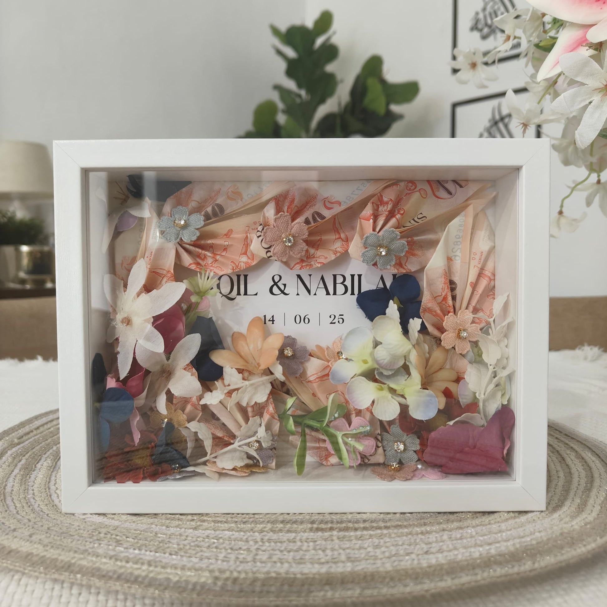 Present your mahar in style with our beautifully handcrafted Mahar Box. Designed to hold your mas kahwin with elegance and grace. Each box is thoughtfully styled with premium materials and intricate detailing, making it a perfect centerpiece for your wedding day. Customizable to match your theme and color palette.