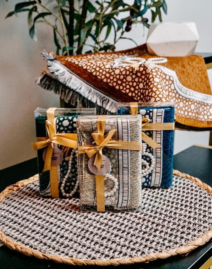Gift your guests a meaningful keepsakeΒ mini Sejadah (35cm x 70cm), crafted from high-quality fabric in Turkey, is neatly packaged in a durable PVC box, combining elegance with practicality. Perfect as an Islamic wedding favor, aqiqah gift, or Ramadan/ Eid keepsake, this set is a thoughtful token that reflects tradition and sophistication.